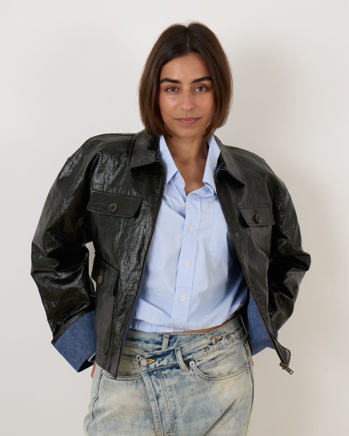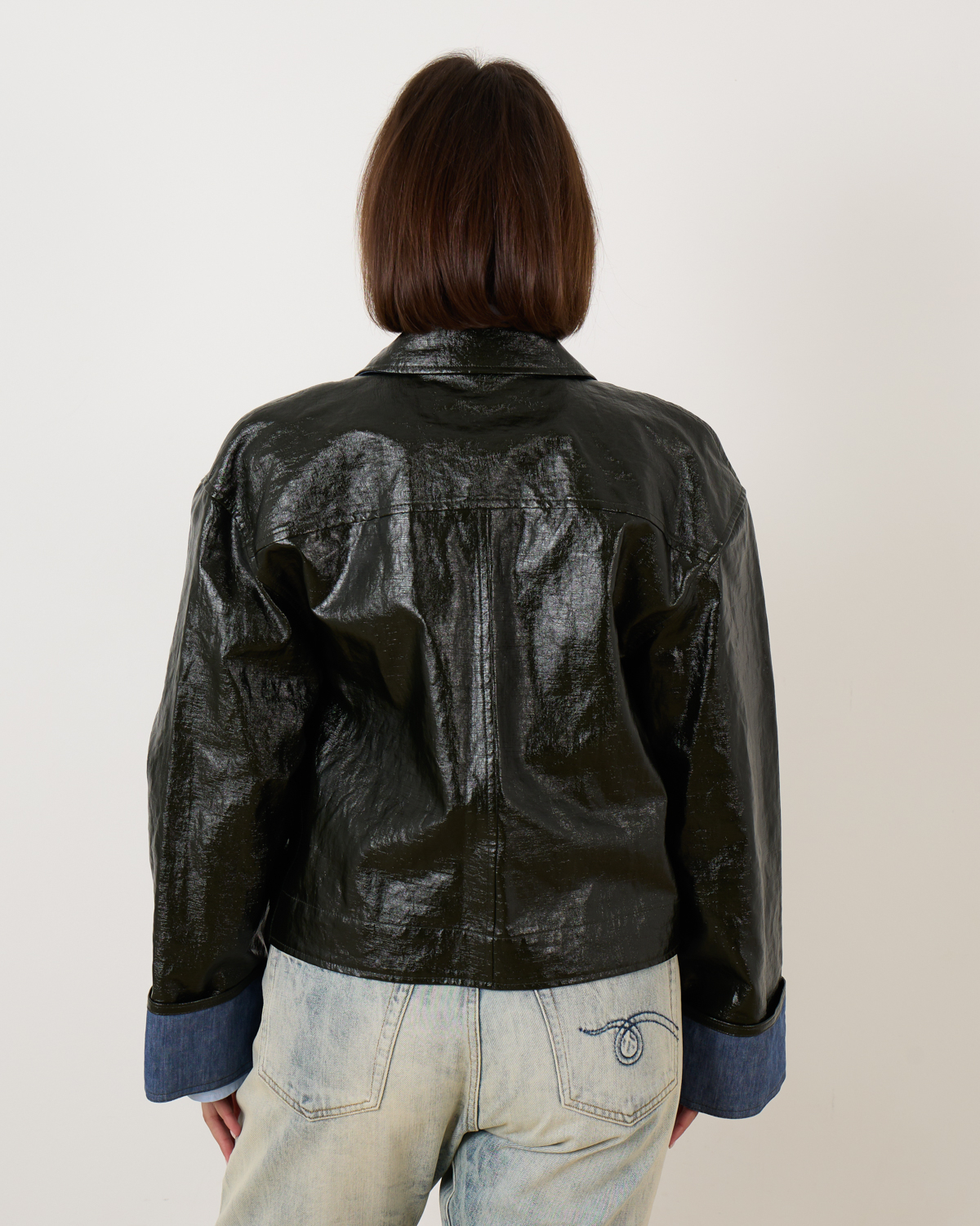 De Ulla Johnson Painter jacket in de kleur cypress is een stijlvol en veelzijdig jack met een moderne uitstraling. Gemaakt van gecoat linnen, biedt dit jack een unieke textuur. De relaxte pasvorm en verlaagde schouders zorgen voor een moeiteloze en comfortabele look. Dit korte jack heeft een puntkraag, lange mouwen met brede manchetten, omgezalgen mouw met een denim look en een praktische ritssluiting aan de voorkant. Dankzij de dubbele borst- en zijzakken is het niet alleen stijlvol, maar ook functioneel. het jack valt mooi op de heup,waardoor het eenvoudig te combineren is met verschillende outfits.