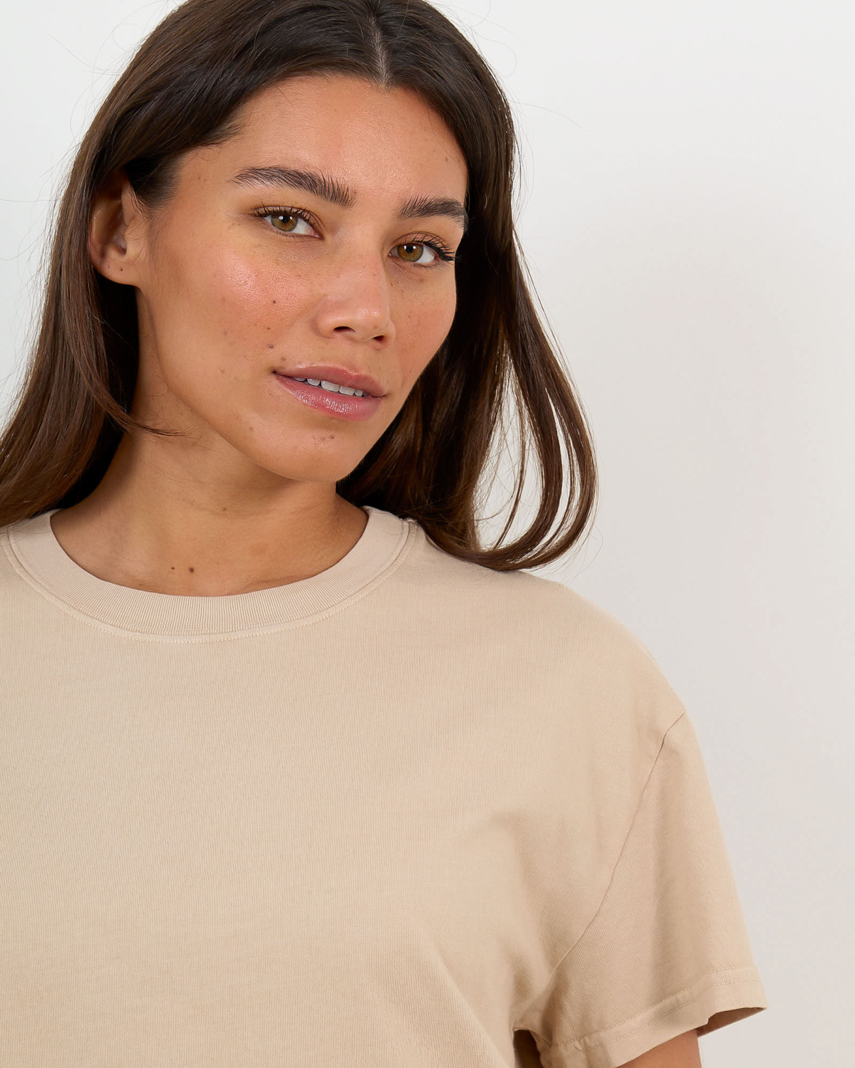 Voor een casual look combineer je de Carter T-Shirt Sand Drift met een vintage jeans en witte sneakers. Draag hem onder een blazer voor een elegante twist, of style het shirt met een plissé rok en sandalen voor een vrouwelijke uitstraling. Xírena dames kleding staat bekend om de hoogwaardige basics die perfect aansluiten bij de moderne vrouw.